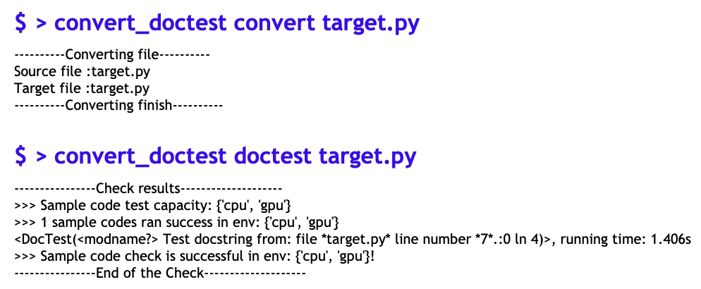 为了方便社区开发者完成示例代码的修改,顺师傅开发了 convert_doctest 辅助工具,能够实现: